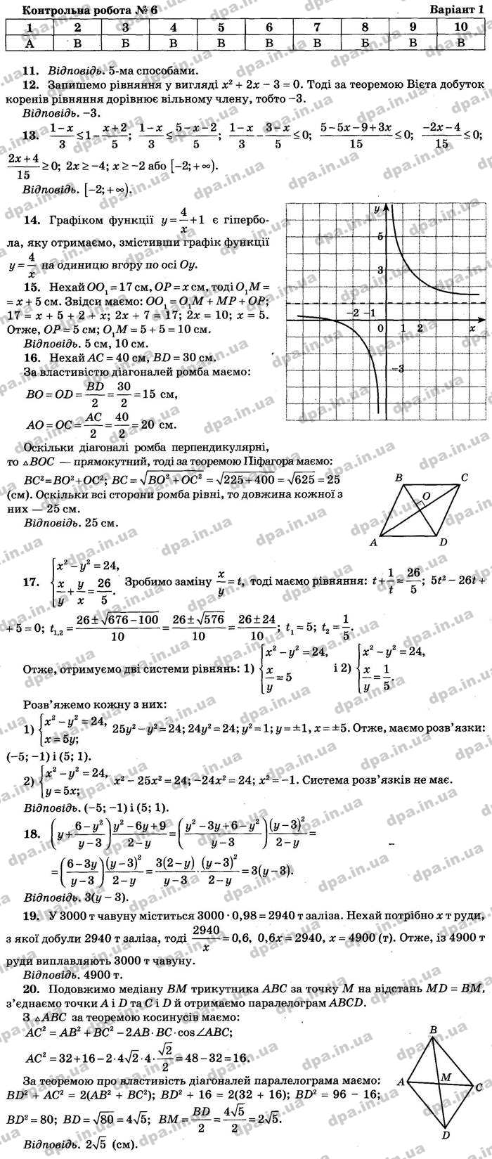 Державна підсумкова атестація (ДПА) 2021 року. Розв’язник завдань, відповіді до збірника завдань з Математики 9 клас В.Г. Бевз, Д.В. Васильєва (10 контрольних робіт у двох варіантах) читати онлайн: